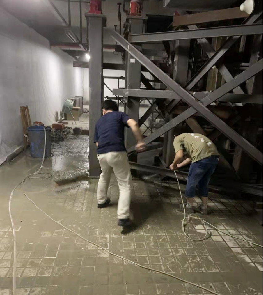 本工程由于上部覆土厚度過大,導(dǎo)致部分混凝土柱承載力不足,進(jìn)而造成混凝土柱產(chǎn)生45°斜裂縫,有極大的安全隱患,需要將混凝土柱用鋼結(jié)構(gòu)頂撐后,再置換混凝土。